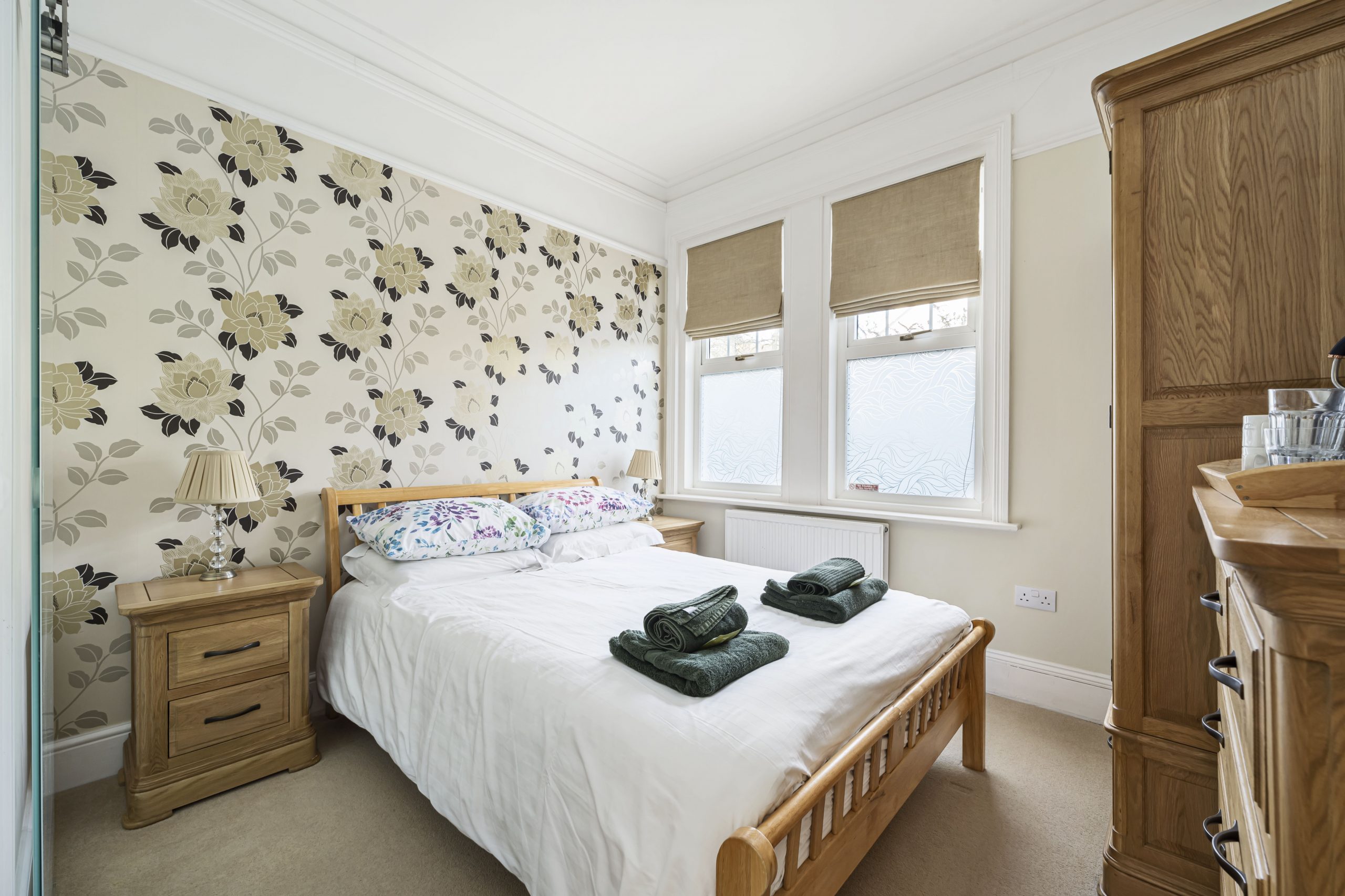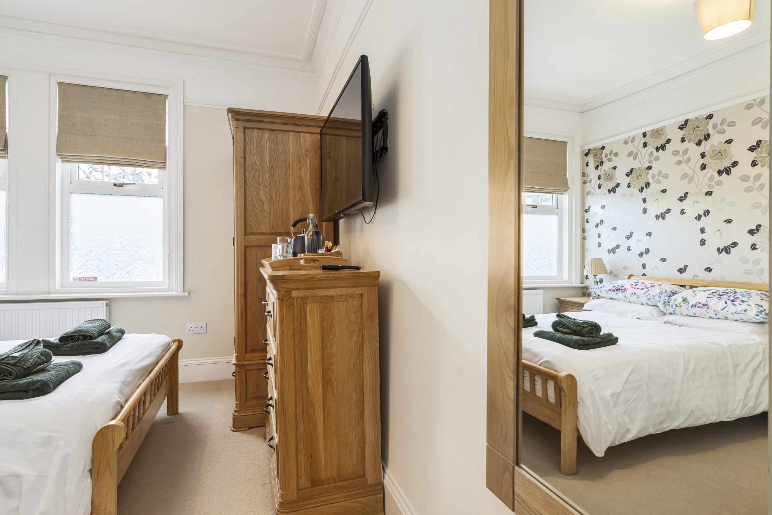 The room is furnished with a double bed, two bedside tables, a large oak wardrobe, high chest of drawers and a 40 inch smart TV. Tea and coffee making facilities are also provided in the room.