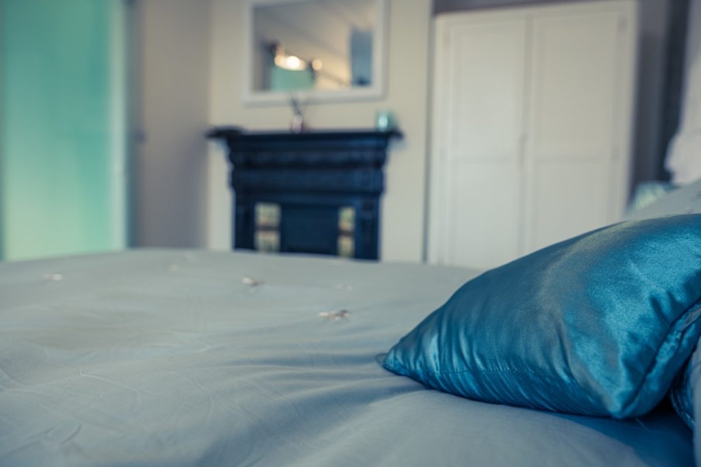 The room is furnished with a super king size bed, a range of solid oak furniture with plenty of space for belongings, a couple of leather tub seats in the bay window for guests to relax in and a 55 inch smart TV. Tea and coffee making facilities are also provided in the room.